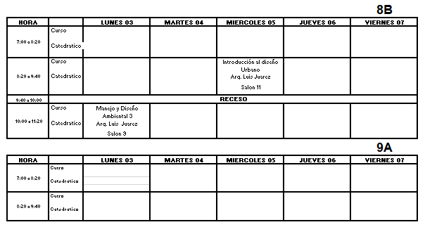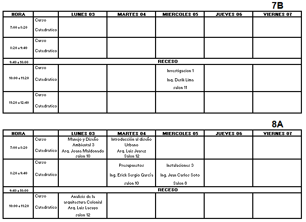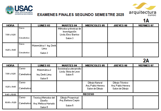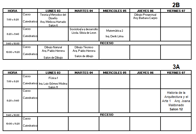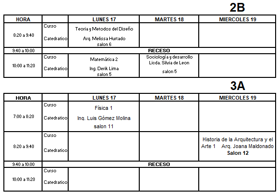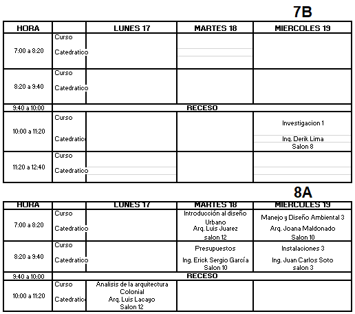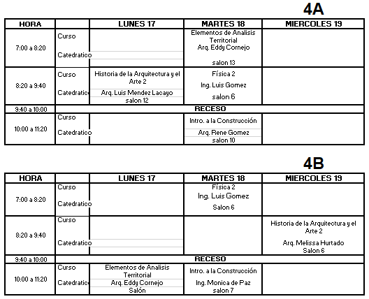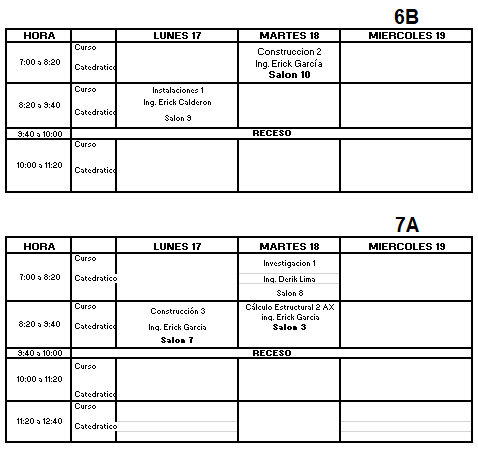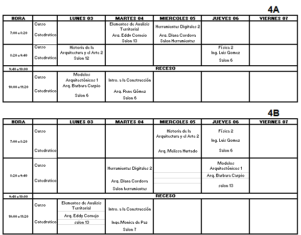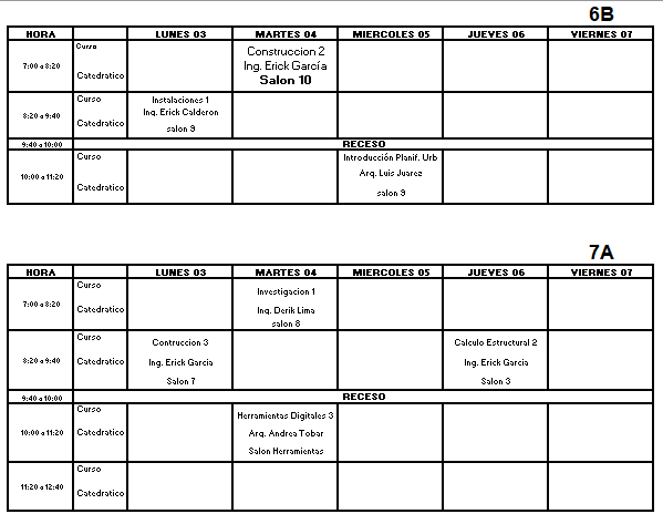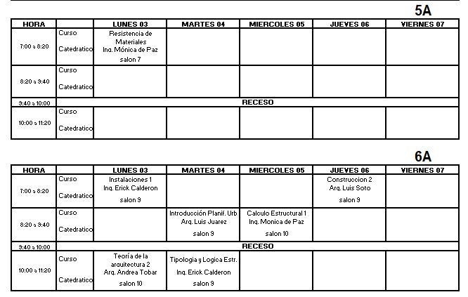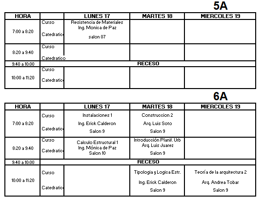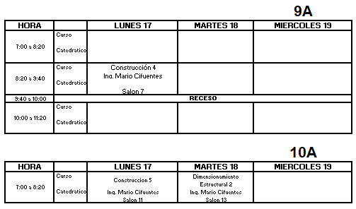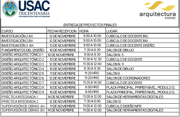 HORARIO DE ENTREGA DE PROYECTOS FINALES