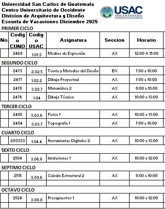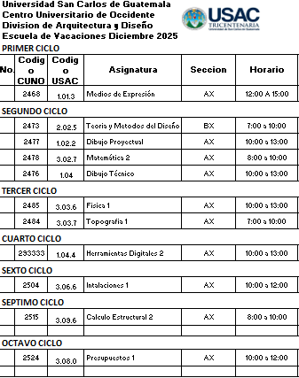 CURSOS HABILITADOS ESCUELA DE VACACIONES DICEMBRE